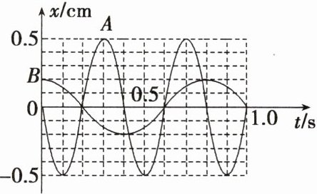 如图为质点 $ A $、$ B $ 分别做简谐运动的位移 $ -$ 时间图像。