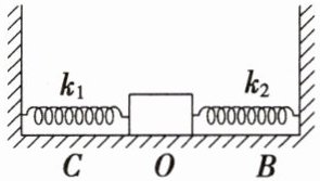 针对练.(多选)如图所示,物块系在两水平弹簧之间,两弹簧的劲度系数分别为 $k_1$ 和 $k_2$,且 $k_1 = k$,$k_2 = 2k$,两弹簧均处于自然伸长状态,今向右拉动物块,然后释放,物块在 $B$、$C$ 间振动(不计一切阻力),$O$ 为平衡位置,则下列判断正确的是( )
