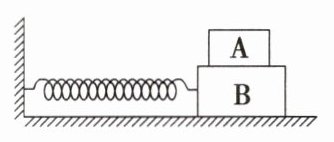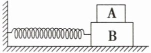 例 1 如图所示,水平面光滑,$A$、$B$ 两物体叠放在一起,$A$、$B$ 的质量分别为 $m_A$、$m_B$,弹簧的劲度系数为 $k$,使物体 $A$、$B$ 振动,过程中 $A$、$B$ 始终保持相对静止。试证明物体 $A$ 的振动是简谐运动。