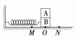 【师生互动】如图所示,A、B 两个叠放物体与轻质弹簧组成的系统在光滑水平面上的 M、N 两点间做简谐运动,A、B 间无相对运动,平衡位置为 O。
