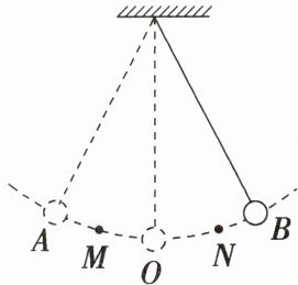(多选)如图为均匀小球在做单摆运动,平衡位置为$O$点,$A$、$B$为最大位移处,$M$、$N$点关于$O$点对称。下列说法正确的是( )