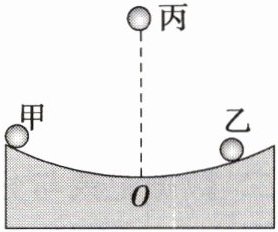针对练. 如图所示,光滑圆槽的半径$R$远大于小球运动的弧长。甲、乙、丙三个小球(均可视为质点)同时由静止释放,开始时,甲球比乙球离槽最低点$O$远些,丙球在槽的圆心处。则以下关于它们第一次到达点$O$的先后顺序的说法正确的是( )