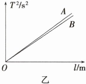 (4) 该同学分别在北京和厦门两地做了此实验,比较准确地探究了单摆的周期 $ T $ 与摆长 $ l $ 的关系,然后将这两组实验数据绘制成 $ T^{2}-l $ 图像,如图乙所示,在北京测得的实验结果对应的图线是 ________(填“$ A $”或“$ B $”)。