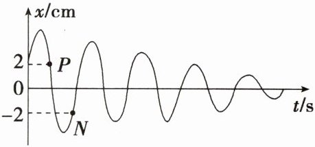 例 1(多选)如图是一单摆做阻尼振动的位移—时间图像,比较摆球在 P 与 N 时刻的下列物理量,正确的是( )