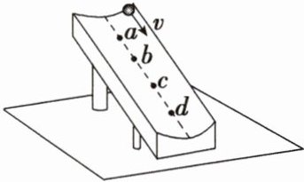 (多选)如图所示,有一光滑并带有圆弧的曲面,倾斜放在平面上,在曲面的底部平行于轴线画一条虚线,现将一个可视为质点的小球从图中位置平行于虚线以一定的初速度进入曲面,将小球下滑过程中经过虚线时的位置依次记为$a$、$b$、$c$、$d$,以下说法正确的是( )
