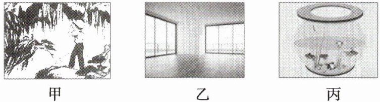 2. 如图丙所示,我们对着家中的鱼缸大喊时会看见鱼缸中的鱼儿受到“惊吓”而急速游动,好像听到了我们的喊声,这属于波的什么现象?