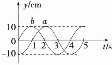 可得波长$\lambda=\frac{300}{6n+1} cm(n=0,1,2,·s)$。当$n=4$时,可得$\lambda=12 cm$,B正确;因为$a$、$b$两个质点的振动时间差$\Delta t=(n+\frac{1}{6})T(n=0,1,2,·s)$,可知当两质点分别位于平衡位置
