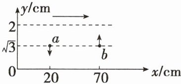 代入$t=0$可得$y_b=2\sin\varphi_b cm=\sqrt{3} cm$,解得$\varphi_b=\frac{\pi}{3}$,在$t=\frac{T}{3}$