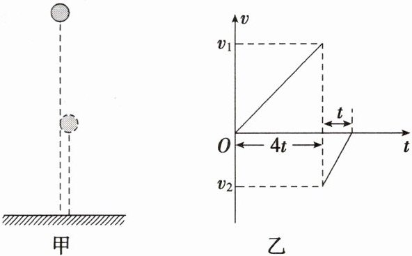 如图甲所示,质量 $ m = 0.2\ kg $ 的弹性小球从地面上方某一高度由静止开始下落,弹起后上升到某一高度,小球与地面碰撞的时间忽略不计,规定竖直向下为正方向,此过程小球的 $ v - t $ 图像如图乙所示,空气对小球的阻力大小恒为重力的 $ 0.5 $ 倍,下降的时间是上升时间的 $ 4 $ 倍,下降与上升的整个过程的平均速度为 $ 13\ m/s $,重力加速度 $ g $ 取 $ 10\ m/s^2 $,地面对小球的弹力远大于小球的重力,下列说法正确的是 ( )