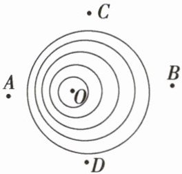 例 4 如图表示产生机械波的波源$ O $做匀速运动的情况,图中的圆表示波峰。