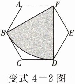 变式 4 - 2 如图,在边长为 6 的正六边形 $ABCDEF$ 中,以点 $F$ 为圆心,以 $FB$ 的长为半径作 $\overset{\frown}{BD}$,剪如图中阴影部分做一个圆锥的侧面,则这个圆锥的底面半径为