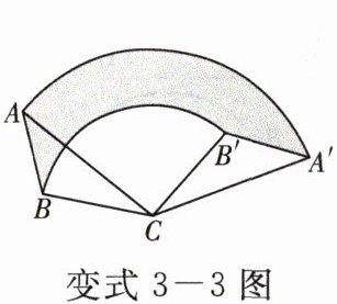 变式 3 - 3 [作差法]如图,将 $\triangle ABC$ 绕点 $C$ 顺时针旋转 $120°$ 得到 $\triangle A'B'C$。已知 $AC = 3$,$BC = 2$,则线段 $AB$ 扫过的图形(阴影部分)的面积为