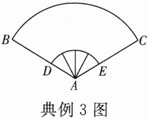 典例 3 为弘扬民族传统文化,某校手工兴趣小组将一个废弃的大纸杯侧面剪开直接当作扇面,制作了一个扇子模型(如图),扇形外侧两竹条 $AB$,$AC$ 夹角为 $120°$,$AB$ 长 30 cm,扇面的 $BD$ 边长为 18 cm,则扇面面积为