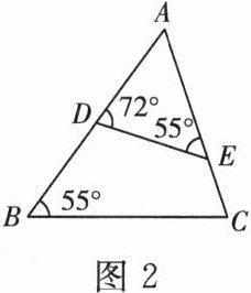 。题根 2 [浙教九上 P142 作业题 T5]在 $\triangle ABC$ 中,$D$,$E$ 分别是 $AB$,$AC$ 上的点。