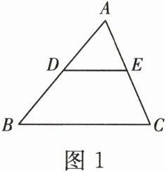 题根 1 [浙教九上 P126 课内练习 T3]如图 1,$D$,$E$ 分别是 $AB$,$AC$ 上的两个点。