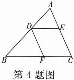 4. [浙教九上 P146T6 改编]如图,在 $\triangle ABC$ 中,点 $D$,$E$,$F$ 分别在边 $AB$,$AC$,$BC$ 上,$DE // BC$,$DF // AC$。已知 $\frac{AD}{BD}=\frac{2}{3}$,$S_{\triangle ABC}=a$,则 $S_{□ DFCE}=$