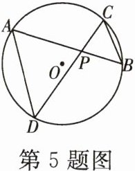 5. [浙教九上 P133T4]已知:如图,在 $\odot O$ 中,弦 $AB$ 与弦 $CD$ 相交于点 $P$。