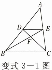 变式 3 - 1 [2025·威海]如图,$\triangle ABC$ 的中线 $BE$,$CD$ 相交于点 $F$,连结 $DE$。下列结论错误的是