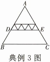 典例 3 [经典题]如图,在等腰三角形 $ABC$ 中,$AB = AC$,图中所有三角形均相似。若其中最小的三角形的面积为 $1$,$\triangle ABC$ 的面积为 $42$,则四边形 $DBCE$ 的面积为