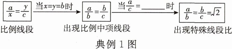 典例 1 小慧同学在学习了九年级上册“4.1 比例线段”3 节课后,发现学习内容是一个逐步特殊化的过程,请在横线上填写适当的数值,感受这种特殊化的学习过程。