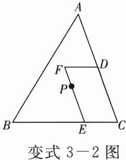 变式 3 - 2 [2023·嘉兴]如图,$P$ 是 $\triangle ABC$ 的重心,$D$ 是边 $AC$ 的中点,$PE // AC$,交 $BC$ 于点 $E$,$DF // BC$,交 $EP$ 的延长线于点 $F$。若四边形 $CDFE$ 的面积为 $6$,则 $\triangle ABC$ 的面积为
