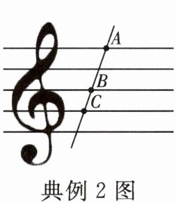 典例 2 如图,五线谱是由等距离、等长度的五条平行横线组成的,同一条直线上的三个点 $A$,$B$,$C$ 都在横线上。若线段 $AB = 3$,则线段 $BC$ 的长为