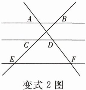 变式 2 如图,已知 $AB // CD // EF$,$BC:CE = 3:4$,$AF = 21$,则 $DF$ 的长为