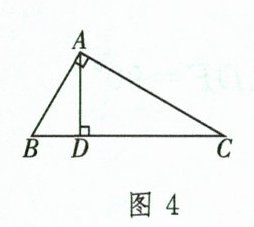 ①如图 4,若 $\angle BAC = 90^{\circ}$,$AD \perp BC$,则 $\triangle ABC \backsim \triangle DBA \backsim \triangle DAC$。