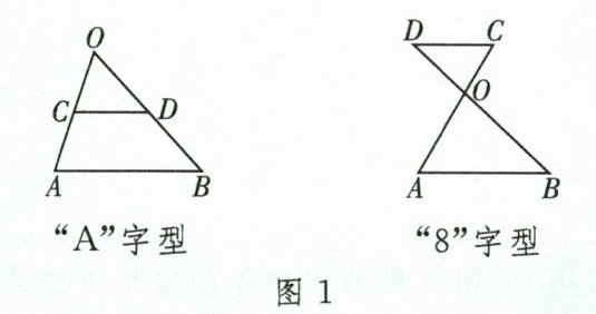 (1)平行线型:如图 1,若 $CD // AB$,则有 $\triangle OCD \backsim \triangle OAB$。