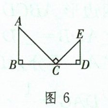 ③如图 6,若 $\angle B = \angle ACE = \angle D = 90^{\circ}$,则 $\triangle ABC \backsim \triangle CDE$。