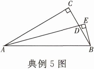 典例 5 [2025·连云港]如图,在 $\triangle ABC$ 中,$\angle ACB = 90^{\circ}$,$\angle CAB = 30^{\circ}$,$AD$ 平分 $\angle CAB$,$BE \perp AD$,$E$ 为垂足,则 $\frac{AD}{BE}$ 的值为