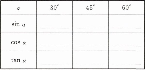 2.从左到右,从上到下依次填:$\frac{1}{2}$ $\frac{\sqrt{2}}{2}$ $\frac{\sqrt{3}}{2}$ $\frac{\sqrt{3}}{2}$ $\frac{\sqrt{2}}{2}$ $\frac{1}{2}$ $\frac{\sqrt{3}}{3}$ $1$ $\sqrt{3}$