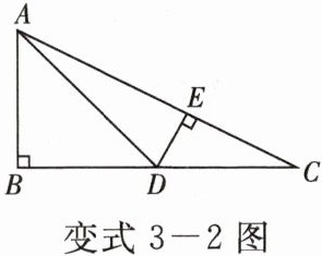 变式 3−2 [2025·江北区模拟]如图,在 Rt△ABC 中,∠B=90°,AB=2,AD 是 BC 边上的中线,tan∠BAD=1,DE⊥AC,垂足为 E。求: