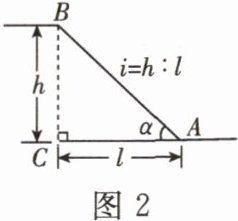如图 $2$,通常把坡面的垂直高度 $h$ 和水平宽度 $l$ 之比叫做