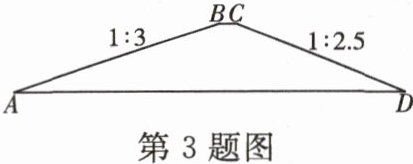 3. [浙教九下 P20 例 3]水库堤坝的横断面是梯形,如图。测得 $BC$ 长为 $6$ m,$CD$ 长为 $60$ m,斜坡 $CD$ 的坡比为 $1:2.5$,斜坡 $AB$ 的坡比为 $1:3$。求: