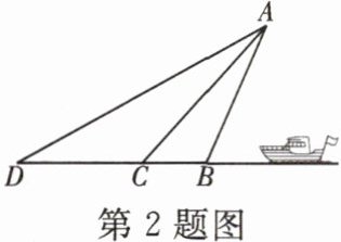 2. [浙教九下 P31T12 改编]如图,某轮船在海上以每小时 $30$ 海里的速度向正西方向航行。上午 $8:00$ 在点 $B$ 处测得小岛 $A$ 在北偏东 $30^{\circ}$ 方向,上午 $9:00$ 船到达点 $C$ 处,测得小岛 $A$ 在北偏东 $45^{\circ}$ 方向。如果轮船继续向西航行,上午 $11:00$ 到达点 $D$ 处,则点 $D$ 与小岛 $A$ 的距离为