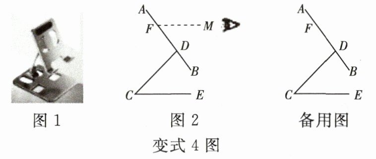 变式 4 [2025·舟山模拟]如图 $1$ 所示是一种简易手机支架,由底座、支撑板和托架组成,将手机放置在托架上,图 $2$ 是其简易结构图。现测得托架 $AB$ 长 $8$ cm,$DB$ 长 $2$ cm,支撑板 $CD$ 长 $6$ cm,$AB$ 可绕点 $D$ 转动,$CD$ 可绕点 $C$ 转动。