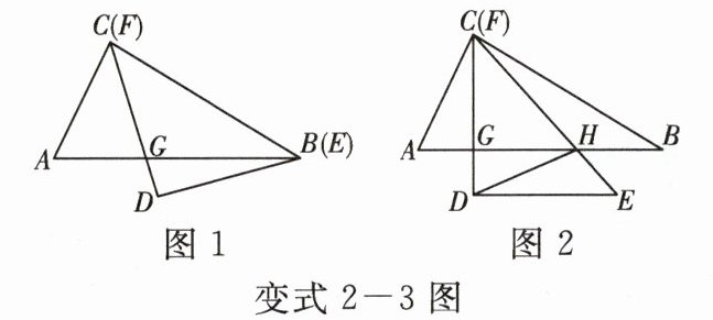 变式2-3 [2023·嘉兴、舟山]在一副三角尺ABC和DEF中,∠ACB=∠EDF=90°,∠ABC=30°,∠DEF=45°,BC=EF=12.将它们叠合在一起,边BC与EF重合,CD与AB相交于点G(如图1),此时线段CG的长是