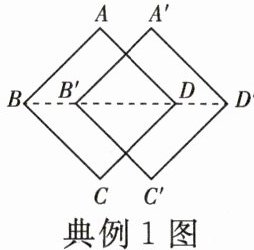 典例1 [新情境][嘉兴中考]“方胜”是中国古代妇女的一种发饰,其图案是由两个全等正方形相叠组成,寓意是同心吉祥.如图,将边长为2cm的正方形ABCD沿对角线BD方向平移1cm得到正方形A'B'C'D',形成一个“方胜”图案,则点D,B'之间的距离为(