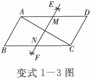 变式 1 - 3 [2025·齐齐哈尔]如图,在□ABCD 中,BC = 2AB = 8,连结 AC,分别以点 A,C 为圆心,大于$\frac{1}{2}AC$的长为半径作弧,两弧相交于点 E,F,作直线 EF,交 AD 于点 M,交 BC 于点 N,若点 N 恰为 BC 的中点,则 AC 的长为