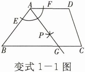 变式 1 - 1 [2025·眉山]如图,在四边形 ABCD 中,AD//BC,AB = 6,BC = 10.按下列步骤作图:①以点 A 为圆心,适当长度为半径画弧,分别交 AB,AD 于 E,F 两点;②分别以点 E,F 为圆心,大于$\frac{1}{2}EF$的长为半径作弧,两弧相交于点 P;③作射线 AP,交 BC 于点 G,则 CG 的长为(