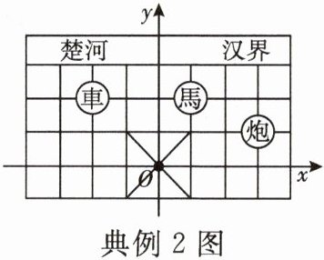 典例2[2023·台州]如图是中国象棋棋盘的一部分,建立如图所示的平面直角坐标系,已知“車”所在位置的坐标为$(-2,2)$,则“炮”所在位置的坐标为(