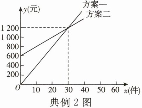 典例 2 [2023·丽水]某公司产品销售量提升速度较快,为促进生产,公司提供了两种付给员工月报酬的方案(如图),员工可以任选一种方案与公司签订合同. 看图解答下列问题: