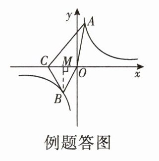 例题 (10 分)如图,在平面直角坐标系中,反比例函数 $ y = \frac{k}{x}(k \neq 0) $ 的图象过等边三角形 $ BOC $ 的顶点 $ B $,点 $ C $ 在 $ x $ 轴的负半轴上,$ OC = 2 $,点 $ A $ 在第一象限内的反比例函数的图象上,连结 $ AC $,$ AO $.