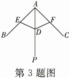 3. [浙教八上 P45T23 改编]我国纸伞的制作工艺十分巧妙.如图,伞不管是张开还是收拢,伞柄AP始终平分同一平面内两条伞骨所成的角∠BAC,且AE=AF,DE=DF,从而保证伞圈D能沿着伞柄滑动.根据以上条件,证明点D在AP上的依据是(