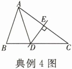 典例4 [2023·丽水]如图,在△ABC中,AC的垂直平分线交BC于点D,交AC于点E,∠B=∠ADB. 若AB=4,则DC的长是