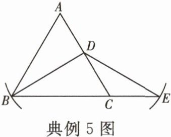 典例5 [经典题]如图,BD是等边三角形ABC的中线,以点D为圆心,DB的长为半径画弧,交BC的延长线于点E,连结DE. 求证:CD=CE.