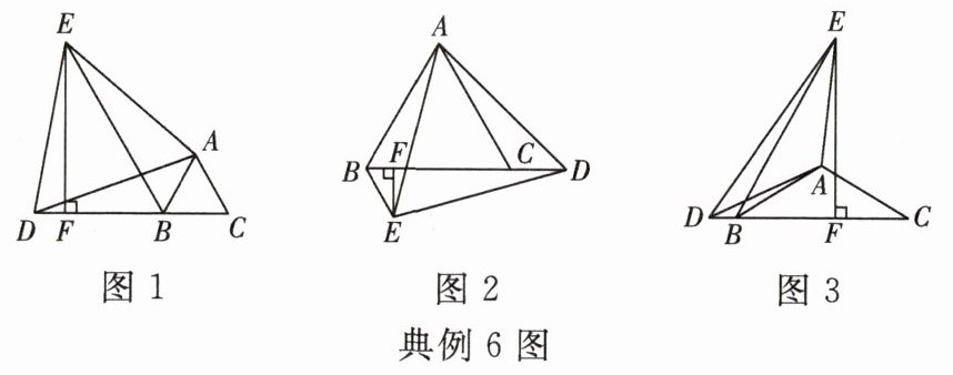 典例6 [2025·龙东地区]已知:如图,△ABC中,AB=AC,设∠BAC=α,D是直线BC上一动点,连结AD,将线段AD绕点A顺时针旋转α至AE,连结DE,BE,过点E作EF⊥BC于点F. 现做如下探究: