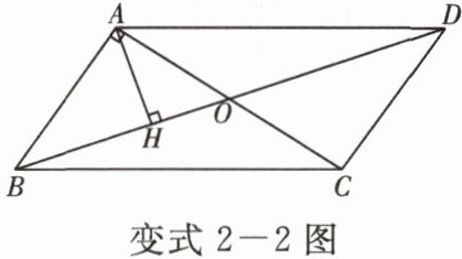 变式 2-2 如图,在 $□ ABCD$ 中,对角线 $AC$,$BD$ 相交于点 $O$,$AB\perp AC$,$AH\perp BD$ 于点 $H$. 若 $AB = 2$,$BC = 2\sqrt{3}$,则 $AH$ 的长为