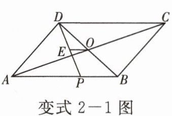 变式 2-1 如图,$□ ABCD$ 的对角线 $AC$,$BD$ 相交于点 $O$,$\angle ADC$ 的平分线与边 $AB$ 相交于点 $P$,$E$ 是 $PD$ 的中点,若 $AD = 4$,$CD = 6$,则 $EO$ 的长为(